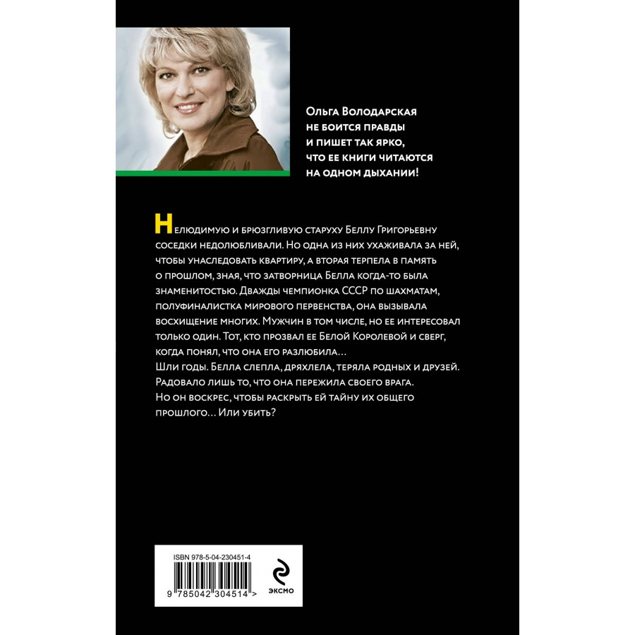Нелюдимую и брюзгливую старуху Беллу Григорьевну соседки недолюбливали. Но одна из них ухаживала за ней, чтобы унаследовать квартиру, а вторая терпела в память о прошлом — знала, что затворница Белла когда-то была знаменитостью. Дважды чемпионка СССР по шахматам, полуфиналистка мирового первенства, она вызывала восхищение многих. Мужчин в том числе, но ее интересовал только один. Тот, кто прозвал ее Белой Королевой и сверг, когда понял, что она его разлюбила…