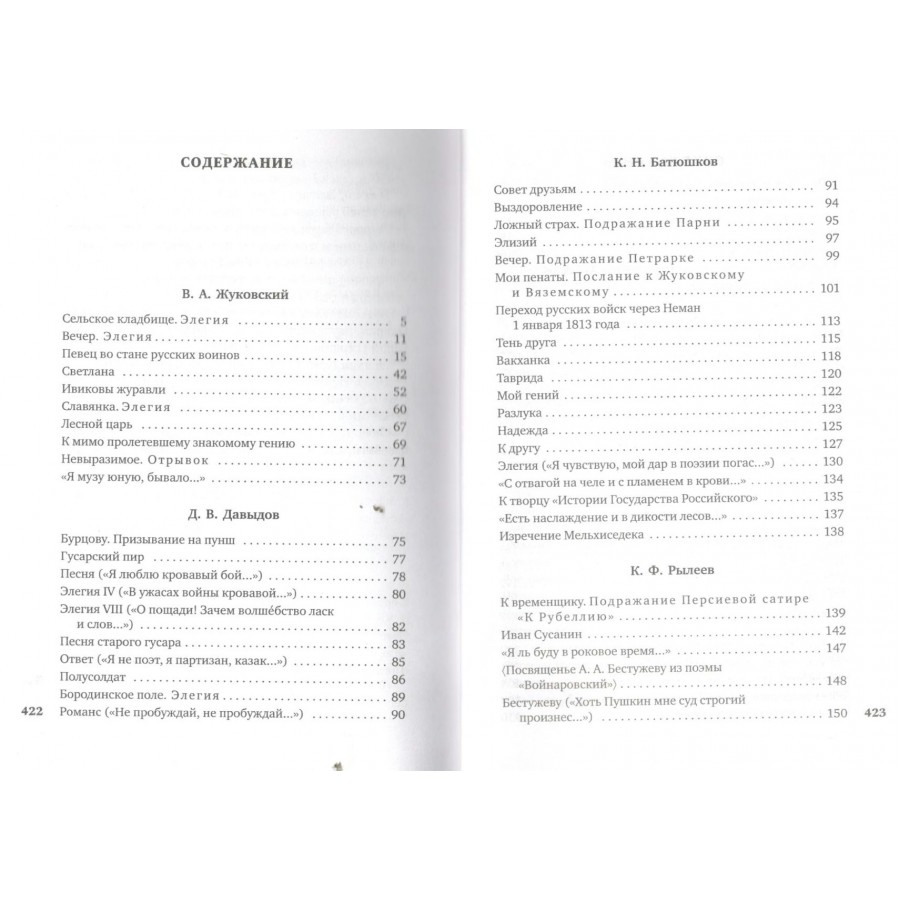 В сборник вошли стихотворения В. А. Жуковского, А. С. Пушкина, Д. В. Давыдова, К. Н. Батюшкова, К. Ф. Рылеева, B. К. Кюхельбекера, А. И. Одоевского, П. А. Вяземского, Е. А. Баратынского, A. А. Дельвига, Н. М. Языкова, Д.... Читать далее...