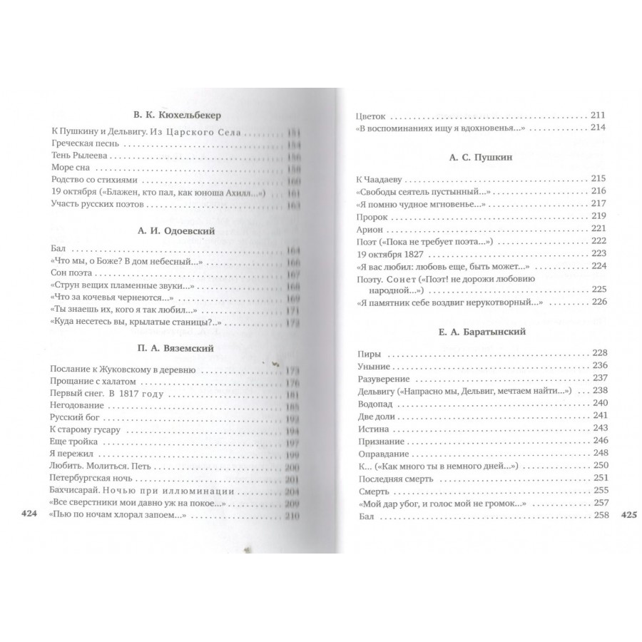 В сборник вошли стихотворения В. А. Жуковского, А. С. Пушкина, Д. В. Давыдова, К. Н. Батюшкова, К. Ф. Рылеева, B. К. Кюхельбекера, А. И. Одоевского, П. А. Вяземского, Е. А. Баратынского, A. А. Дельвига, Н. М. Языкова, Д. В. Веневитинова, М. Ю. Лермонтова, Ф. И. Тютчева. Каждый из них шел в поэзии своим путем, оставив нам прекрасные образцы стихотворного искусства. Понятие «золотой век русской поэзии» обычно связывают с первыми десятилетиями XIX века — периодом ее небывалого расцвета. Это выражение использовал П. А. Плетнев, назвав В. А. Жуковского первым в блистательной плеяде поэтов — современников и друзей А. С. Пушкина. Открытия в области поэтического языка, преодоление отживших эстетических требований были связаны с потребностью расширить потенциал лирики, обратившейся к миру частного человека — его переживаниям, его повседневным заботам или гражданским устремлениям. Поэзия обрела возможность раскрыть недоступное ей прежде многообразие мира, она стала высоким искусством. Совершенство формы, точность выбранного слова, оригинальность мысли и образов — критерии, которые сложились в русской поэзии в начале XIX века и которые надолго вперед определили ее развитие. Издание будет прекрасным подарком всем любителям отечественной литературы.